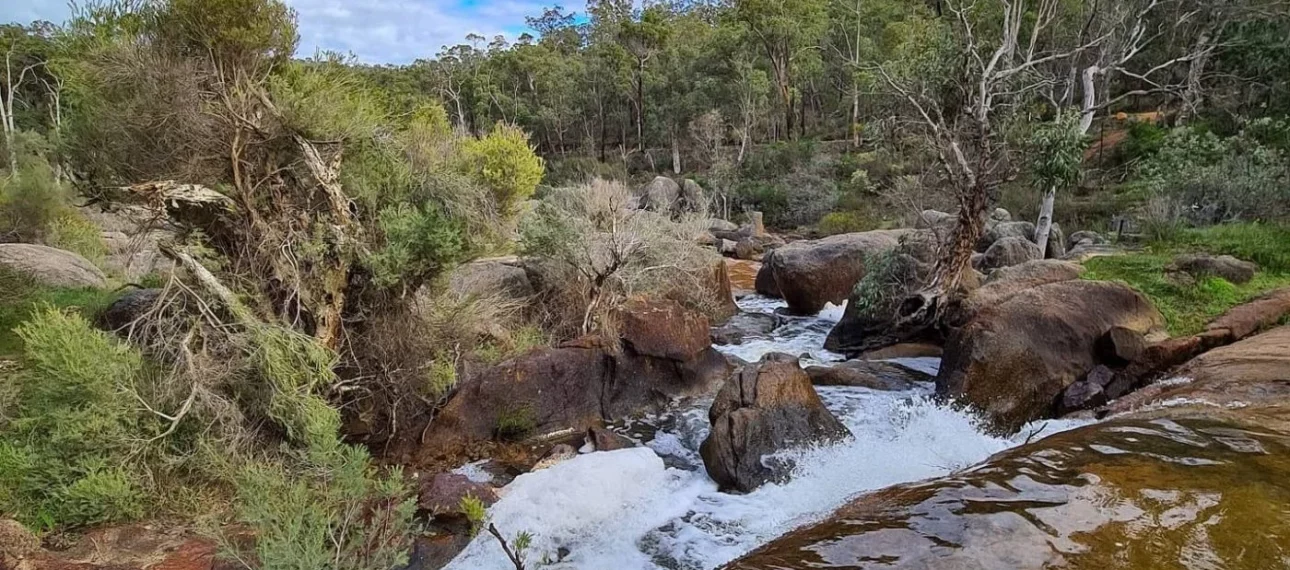 If you’re feeling fit, and you have a good supply of water with you, keep heading west along the the trail, approximately 4km from Falls Park, and you’ll find Hovea Falls in John Forrest National Park. This stunning location offers exceptional photo opportunities, with a sweeping vista and flowing falls in late autumn, winter and early spring. John Forrest National Park is also a fabulous location for wildflowers in spring and early summer.
