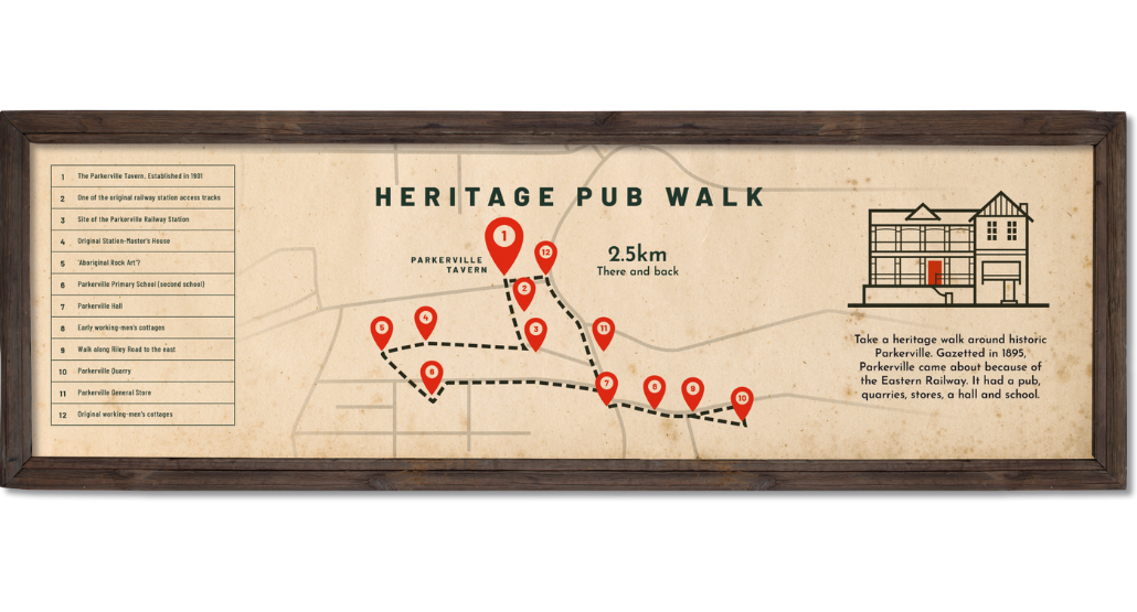 If history’s your thing, check out the circular Heritage Pub Walk, starting and finishing at The Parky, put together by local historian, Rob Borsje. It’s just 2.5 km and takes in historic points of interest along the way.